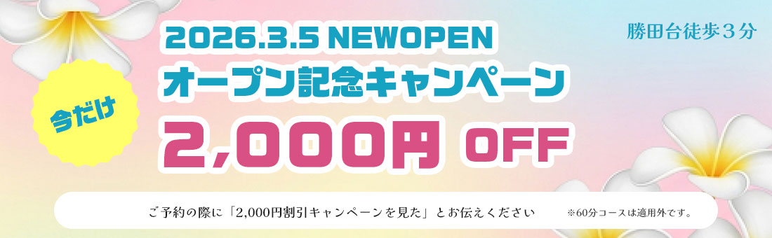 60分コースを除くすべてのコースを2,000円オフでご案内させていただきます。